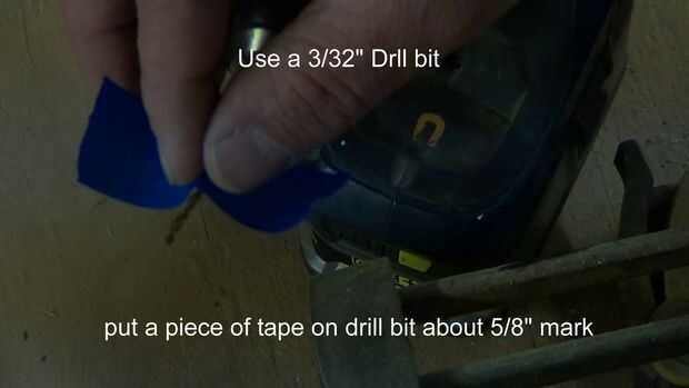 Poner una 3/32 broca en el taladro y colocar un trozo de cinta de 5/8", esto nos dará un punto de parada.