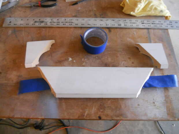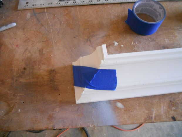 Poner boca abajo la corona y poner alguna cinta en el lado de meloso de extremos para arriba, usé cinta de pintor, pero cualquier cinta adhesiva funciona bien. Si sólo tienes la cinta estrecha utilizar pocas piezas por cada lado.