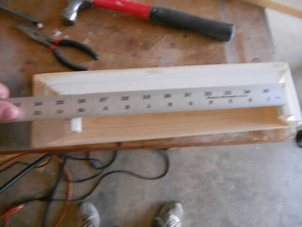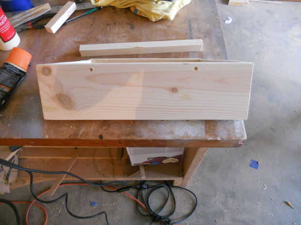 Haga dos agujeros cerca del borde posterior de la plataforma, cerca de 1/2" del borde. Esto es donde se atornillar la repisa en la Cala que vamos a colgar en la pared