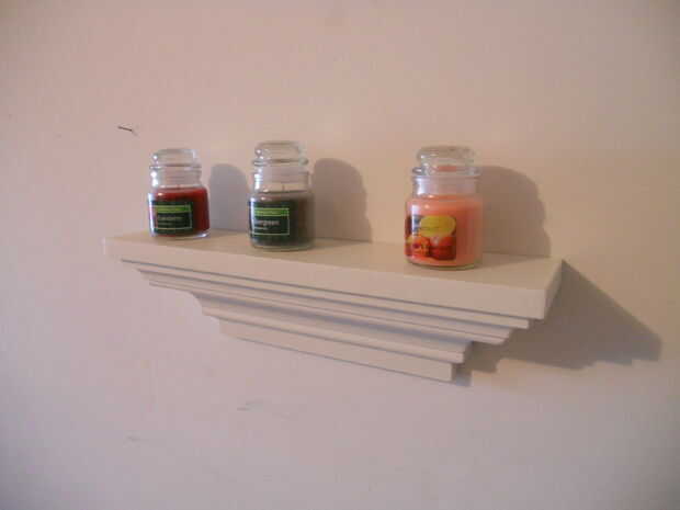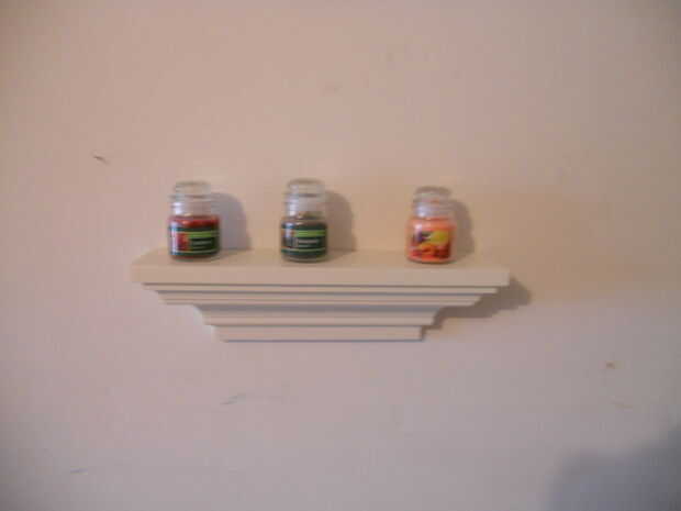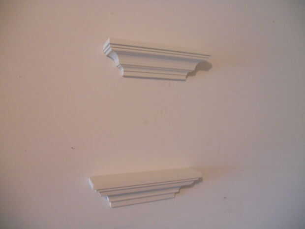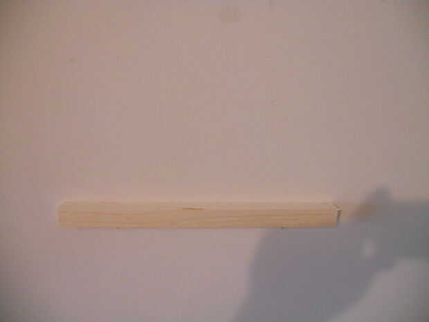 Empuje el estante sobre la cuña y poner en los dos tornillos de la tapa, mantenga apretado contra la pared mientras haces esto.