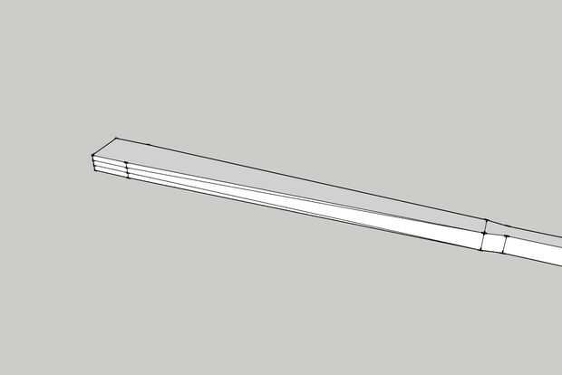 • La punta de la cuchilla es 1/2" y puesto que la Junta es 1 1/2" medir hacia abajo 1/2" y la marca a través de los extremos de la paleta. Luego conectamos estas líneas con la raíz de pala (hombro).