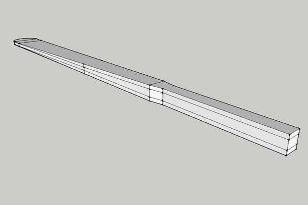 • Se queda en 3/8" dos terceras partes de la hoja. Mi hoja es 33" Marque hasta 3/16" centro 22" abajo de la hoja. Esto es donde hice mi error y sólo tenía una pendiente constante desde la raíz hasta la punta. Supongo que sólo tengo que hacer otro y comparar los dos en la primavera :)
