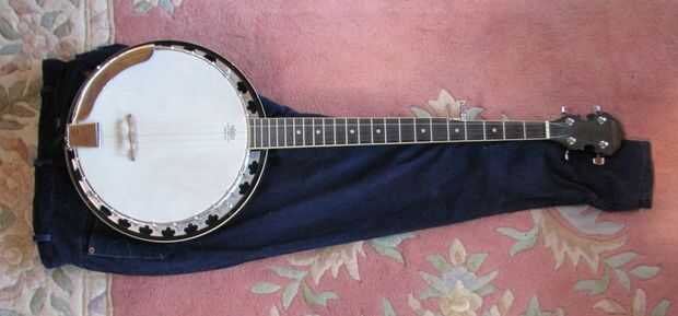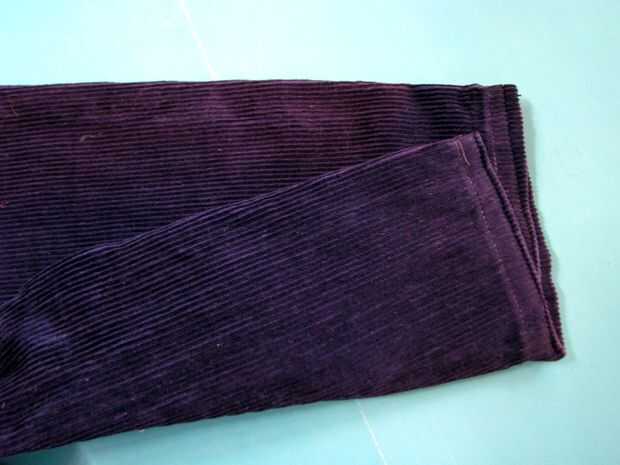 2. doble más un lado de la pierna al final, para que la pierna está ahora sólo 4 o 5 pulgadas (10-12 cm) ancho *, para cómodamente la cabeza de banjo (no herméticamente). Coser los extremos de la pata para cerrar la pierna.