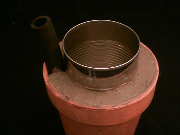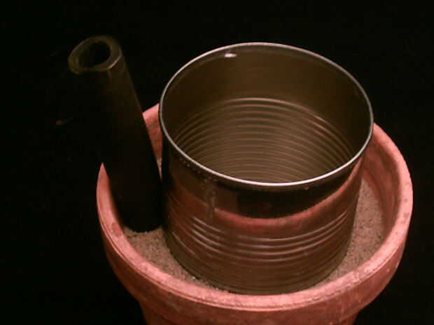 De todos modos, inserte el tubo de llenado en el borde de la arena. Palillo en la arena una pequeña cantidad (quizás 1/10" o menos), solo basta que el cemento no rodee y séllela.