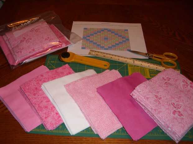 Cuando la selección de su telas intenta ponerte el mismo peso y tipo de material. Encontré después de cortar mis plazas que las tela de mariposa rosa era demasiado pesada o voluminosa con los otros tejidos y tuvo que hacer un viaje a la tienda de tela para elegir el otro material. También asegúrese de que sus tejidos son lavables para evitar facturas de limpieza en seco en un elemento tan grande a máquina.