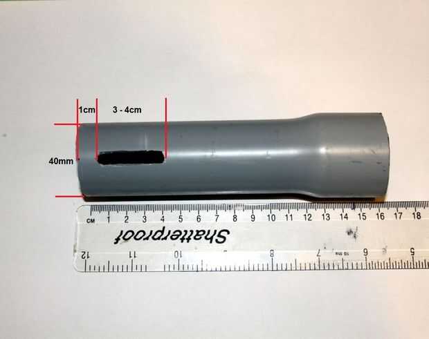 En mi caso tuve que usar tubos PCV 40 mm porque no pude encontrar un diámetro más corto. Para llenar el boquete entre la manija y el tubo de PVC que tuve que usar fuertes claro cinta de embalaje. Asegúrese de dejar un pequeño espacio entre la cinta de embalaje y el tubo de PVC porque es importante para el movimiento de la tubería hacia arriba y hacia abajo.