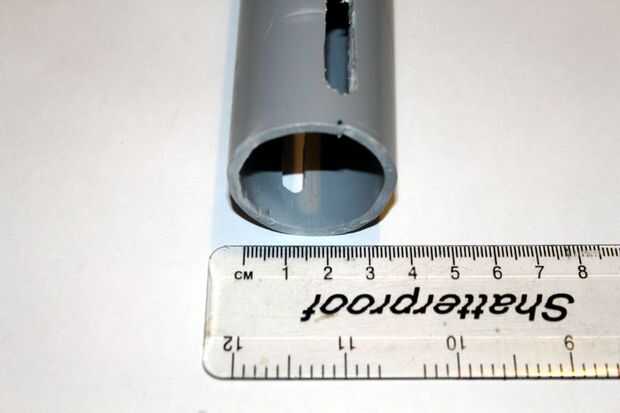 Miden 1 cm de cada lado del extremo más corto de la tubería de PVC.