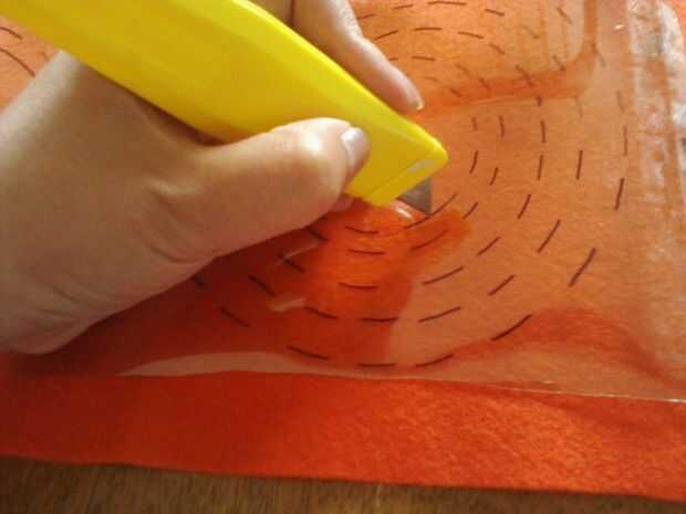 Haga una entrada en la hoja de plástico con un cuchillo por comenzando en el centro del círculo. Pronto usted será capaz de cortar con las tijeras. Cuando estás en el borde externo de la primera serie de círculos que es el momento de cortar un camino que conduce al anillo externo del otro lado. Trabajar en esta ruta continua hasta llegar al centro. Recortar trozos de plástico que forman los extremos cuadrados. Ahora tienes una cinta continua larga de plástico que es rizado y flexible.