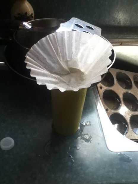 Filtro poner la camiseta o filtro de café en una taza con un poco empujado en. Vierta el agua de la bolsa en una taza diferente a continuación, vierta en la taza de otros