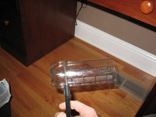 Otra vez, aprovechando su increíble destreza con las tijeras, cortan la parte inferior de la botella de soda.
