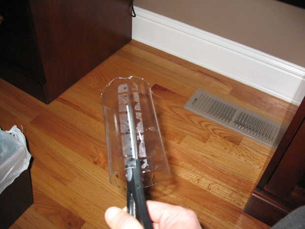 , Cortar por el lado de la botella de soda. Prueba y posición del corte donde el pegamento de la etiqueta es para que no terminan bloqueando la luz del flash