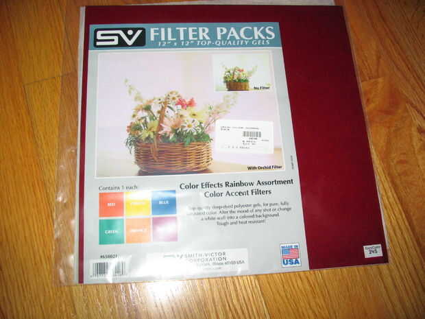 Estos son básicamente coloreados celofán plazas. Gente profesional como llamarlos "geles" por lo que pueden sonar especiales. Puede cuestan unos 20 dólares o menos en una tienda de la cámara. También pruebe en línea! Adorama o BHPhoto tiene.