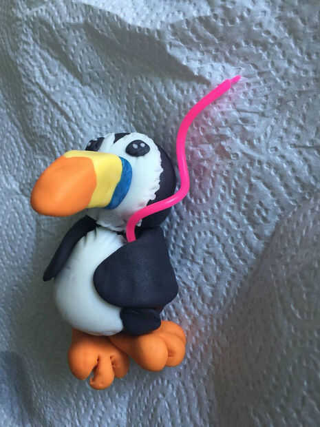 - Mantenga su puffin de espaldas hasta que se seque. Debe secar durante la noche, pero me gustaría darle un par de días por lo que es rock duro y nada va a romper. Aquí su punto débil es el pico.
