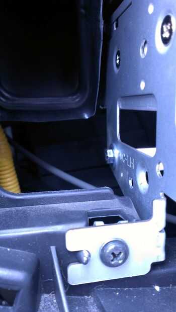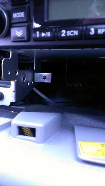 ¿Recuerde que los agujeros en el marco que los tornillos que sujetan la bandeja de CD? Es donde se fijan nuestro nuevo hardware. Opté por usar algunos tornillos M5 con arandelas y tuercas M5 para sostener los soportes en 'L' en el marco de la radio. Obtener sus pernos casi tan estrecha como usted quiere y luego deslice su Asamblea de sostenedor de taza en. Luego simplemente subir los soportes en 'L' o hacia abajo hasta que el sostenedor de taza se sienta en el lugar que desee. Luego retirarlo, apriete sus pernos y deslícela hacia atrás en.