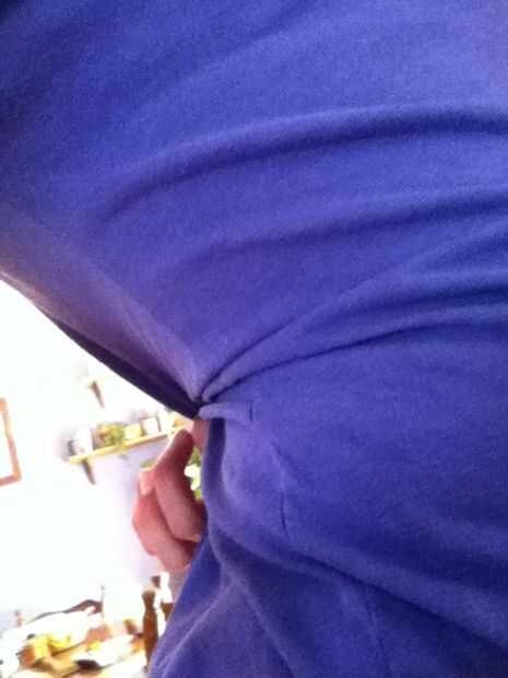 Inicio tomando la parte posterior de su camisa o lado y tire en hacia el centro de la espalda así que está montado sobre superior y más flojo en la parte inferior. Esta es probablemente la parte más difícil. Seguridad pin la tela pellizcada juntos y quite la camisa de su cuerpo y colóquela sobre una superficie plana.