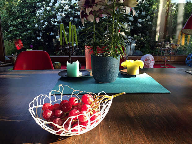 El recipiente se ve mejor cuando se llena con frutas más pequeñas. Uvas se veía muy bien. Instamorph no es tóxico, te tienes que lavar tus frutas antes de servir aunque.