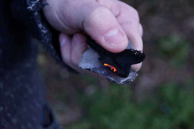 4. golpear el pedernal con el acero tal como se describe en el paso 2 para encender la yesca.