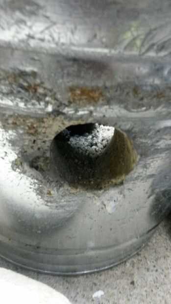 Su 1" PVC y añadir el acoplamiento a él. Luego en el otro tornillo del lado de la pipa de acero. Ahora usted toma la Sierra de hoyo de 1 3/4" y perforar un agujero en el cubo de acero en un ángulo. En el PVC y tubos de acero y hay que ir.
