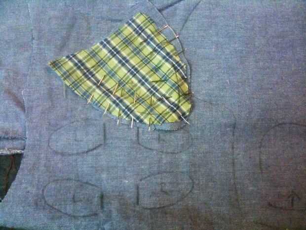 Cuando las piezas se cortaron hacia fuera, cubrió juntos para prepararse para coser.