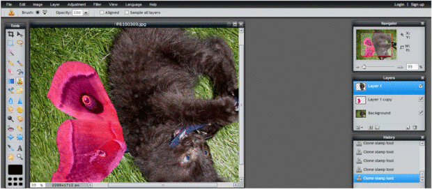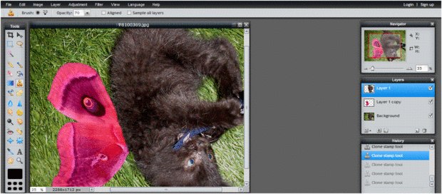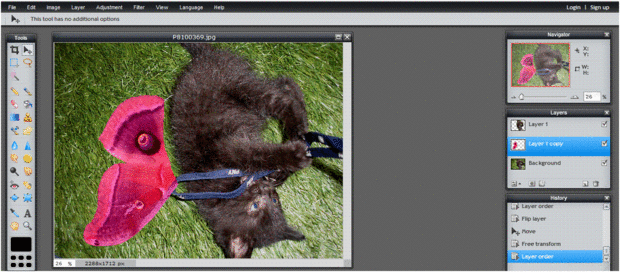 Antes de agregar el ala, quiere crear otra capa del gatito. Para ello, desea utilizar la herramienta lazo y dibujar alrededor de la gatita. Haga clic en copiar en el menú edición y haga clic en pegar. Esto creará otra capa del gatito. De esta manera usted puede poner las alas bajo el gatito cuando llegue el momento.