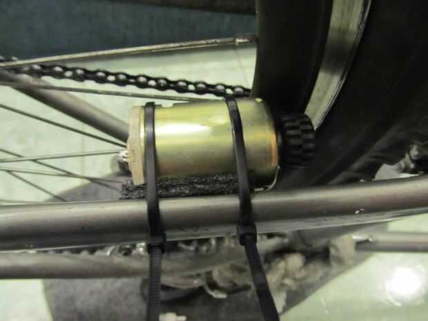 Ya que este es un arreglo algo desechable, utilicé lazos zip. Encontrar un punto de equilibrio donde el motor no se caiga de su bicicleta, pero no hay suficiente presión de la espuma para mantener la rueda LEGO spinning contra el borde. No te frustres si no lograrlo en el primer tiempo.