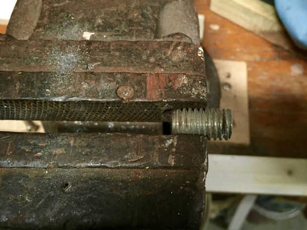 Que necesitaba cortar la cabeza dejando tanto hilo como sea posible, como el perno fue bastante corto. Presentar por el extremo cortado para quitar las brocas afiladas de corte (me enteré de la manera más dura que el hilo es bastante fuerte donde se cortó, ¡ ay!...). Haber hecho que yo luego corte una longitud de 3 m m del perno para convertirse en la parte inferior del envase que el imán.