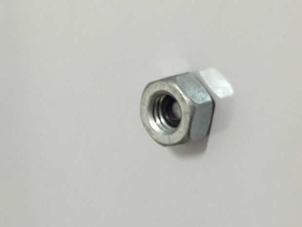 Luego enrosca la sección corta del tornillo en la tuerca, asegurándose de que el agujero para el imán estaba en el exterior. Terminé usando un clavo en el agujero para el imán para conseguir el pedazo corto enroscado. I prueba montado el imán para asegurarse de que la tuerca se sentó al ras cuando se coloca sobre una superficie plana. Entonces utilicé pegamento para fijar el imán y la sección corta.