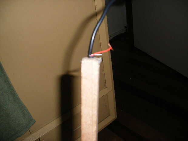 bien, no tengo un taladro, por lo que acabo de recibir un philips pequeño tornillo y uno grande entonces comienzo taladrar el agujero en la parte superior del micrófono wood.the debe adaptarse perfectamente en el agujero. Si no, péguelo con pegamento caliente o el pegamento de la elección. El alambre debe sacar para que pueda hacer el siguiente paso.