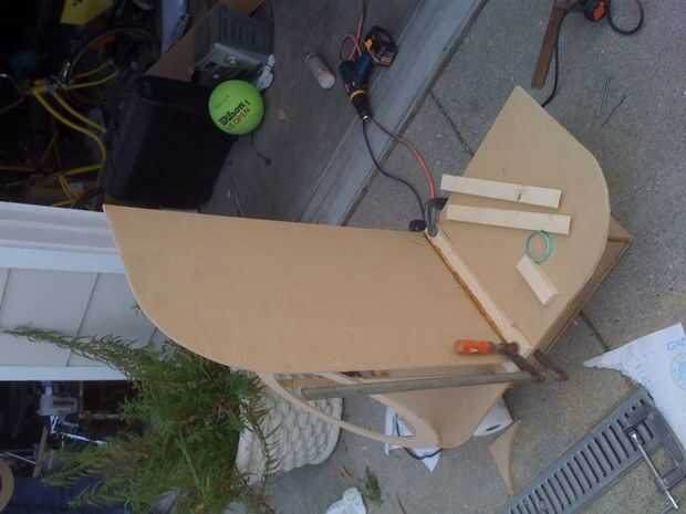 Después de que tenemos que hacer tenemos que añadir los soportes para los altavoces. Como ves en la imagen 3 es un círculo siendo sostenido por unos restos de madera, dosnt tiene que ser capaz de llevar a cabo muchas presentacion sólo por lo que le dará la forma a la fibra de vidrio y un poco de apoyo.