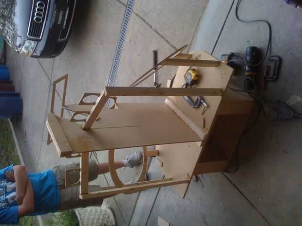 Después de hicimos y que cabe cómodamente tuvimos que hacer la primera base de la caja del altavoz real. Para esto utilizamos 3/4 en el tablero de partícula gruesa para asegurarse de que celebre y cortamos un óvalo mitad para la base de los altavoces.