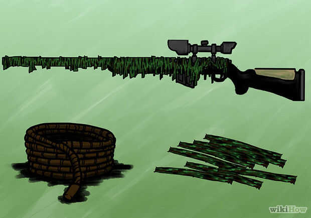 Obtener cierta cuerda marrón o verde, atar unas tiras a lo largo y envuelva alrededor de su arma.