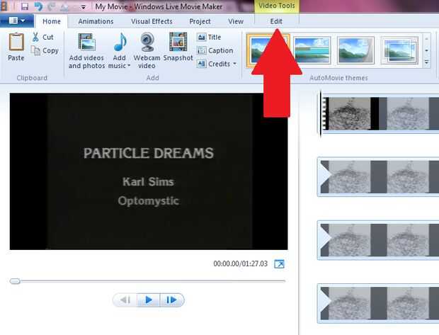 Una vez haya abierto el vídeo, necesitará editar una pequeña sección (30ish 10 seg.) del video para crear tu GIF. Haga clic en la pestaña Editar en la barra de herramientas.