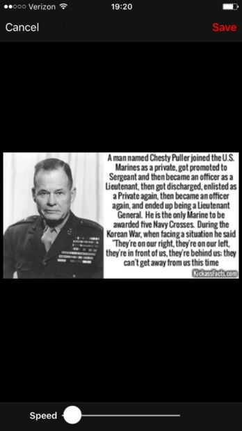En la parte inferior de la pantalla, verá a una especie de ventana pop-up, prensa de la biblioteca de fotos. Haga clic en el álbum que desea tomar sus fotos de y haga clic en ellos, que destacó una luz blanca y tendrá una marca de verificación azul, que te dirá que la imagen ha sido seleccionada. Ahora puede editar el GIF y luego haga clic en hecho o cancelar si no editas. Haga clic en el GIF en su sección guardada y habrá una pequeña caja con una flecha en la esquina inferior derecha de la pantalla. Haga clic en él y haga clic en foto álbum (GIF) que le ahorrará a su rollo de cámara. Y usted recibirá una notificación en la parte inferior de la pantalla que le dirá que se ha guardado.