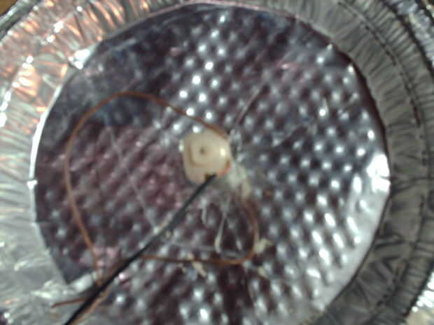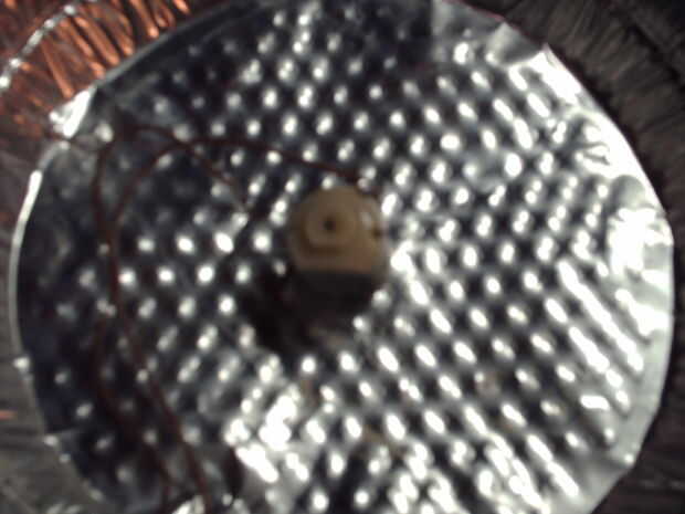 Ahora vas a pegar el motor en el orificio. Colóquese un montón de cola para no reventar. Asegúrese de que no pegue el eje, o bien derrotaría el propósito de construir esto. En primer lugar, uno de los cables que vienen desde el botón y soldadura a un extremo del motor. Deje el alambre libre por ahora. A continuación, tomar una sección de cable y los extremos de la tira. Este se conecte a la batería. Soldar un extremo del alambre en el otro extremo del motor.