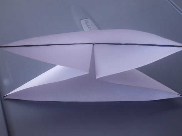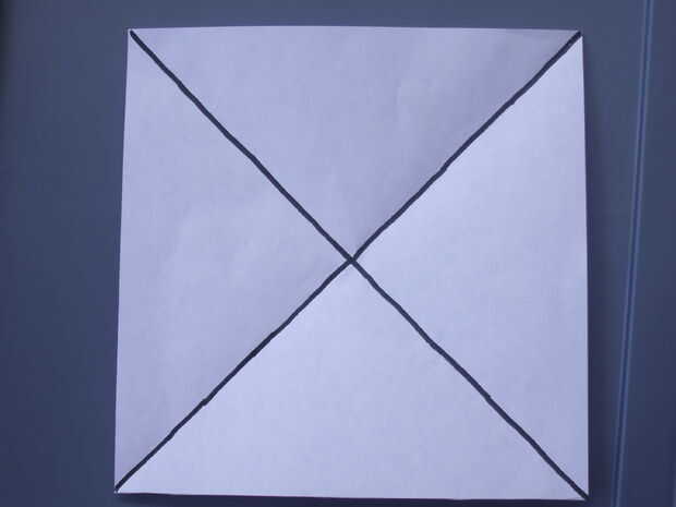 Este es el paso más difícil. Doblé el papel de la otra dirección diagonalmente el hacer una X con los pliegues. Después de haber hecho el X I llevó a cabo el centro de las dos partes frente a la unos a otros, juntar los dos lados y luego rompió hacia abajo con las dos piezas que estaba sosteniendo a en el medio y las otras dos secciones en parte superior e inferior. Resalté el X para que comprendas lo que quiero decir.