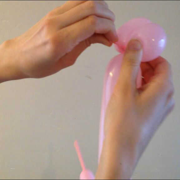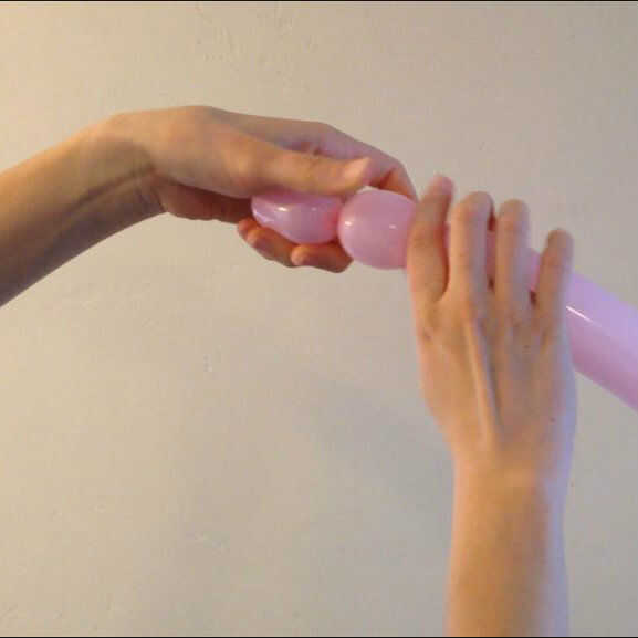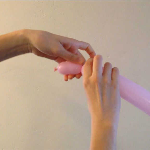 * Nota: después de cada burbuja que haces, apretar suavemente el extremo más largo del balón justo por debajo de la última torcedura que haces. Esto empujará el aire hacia abajo del balón para evitar el estallido.