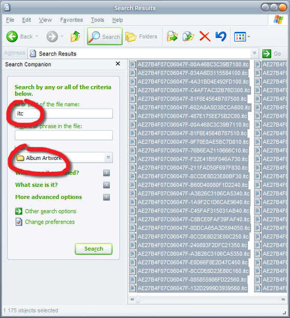 Desde la carpeta Local, haga clic en buscar en su Explorer bar (CTRL-F) y buscar cualquier archivo que tiene "CCI" en su nombre y después de un tiempo usted debe presentarse con una lista de todos los archivos de arte de tapa.