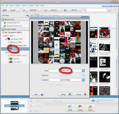 Con la carpeta seleccionada en el panel izquierdo, haga clic en el menú crear -> Collage de imagen, elija cuadrícula de imagen, haga clic en crear, esperar un poco y listo.