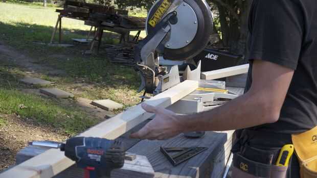 Con una tajada consideró o reducir su 2x3x 8 pies en secciones de 2 pies de la caja de ingletes.