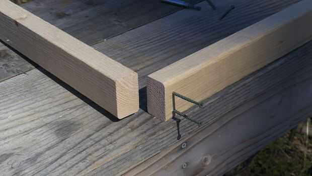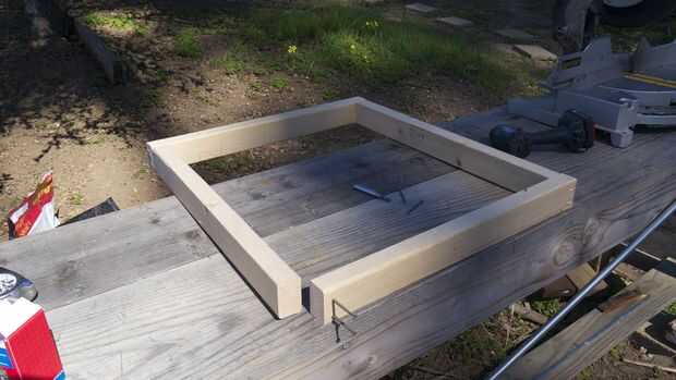 Mi amigo Aron ayudó a mi corte hacia abajo de las tablas de agujeros piloto (para no partir la madera) y joden los marcos juntos mientras comencé a grapar.