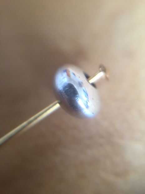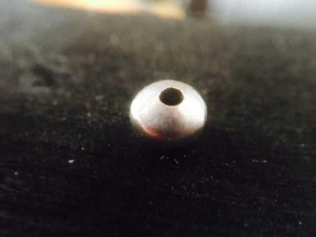 La última fotografía muestra el grano montado en un alambre del oído listo para empezar a hacer un pendiente.
