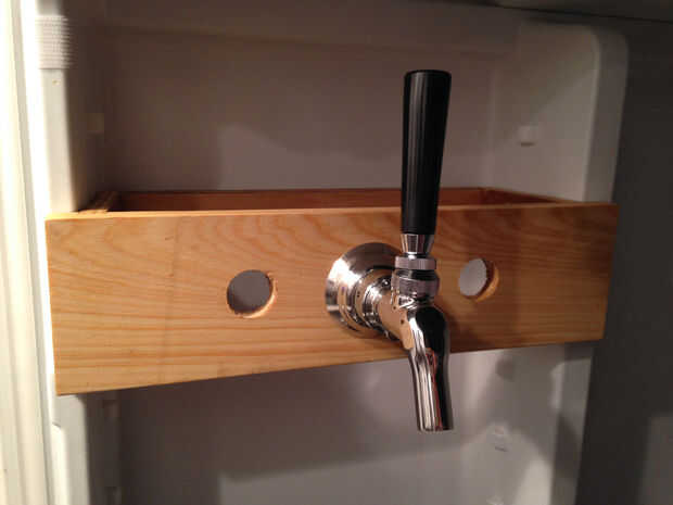Cuando embarrilan homebrew es muy tentador querer poner grifos en. Mi esposa no estaba realmente interesada en poner los agujeros en la nevera, a pesar de su cerveza dedicada, y me imagino a mi 1 año viejo tirando su propia cerveza pero la derecha en el suelo. Decidí usar el colgante mecanismo útil para montar grifos dentro de la nevera. Resultó ser relativamente simple.