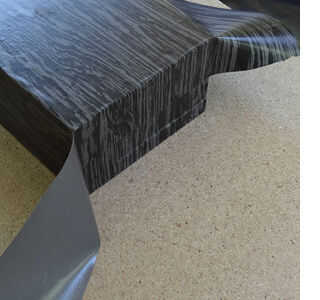 Utilice sus dedos para empujar las burbujas de aire a los lados y la parte superior. Esto es importante, ya que se echan a perder la apariencia de la plataforma acabada. Una vez que haya quitado todas las burbujas de aire, doble el vinilo sobre el borde y segura en el interior de la plataforma.