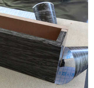 Mediante el uso de una sola pieza de vinilo autoadhesivo y asegurar en el interior de la caja, el vinilo no pele.
