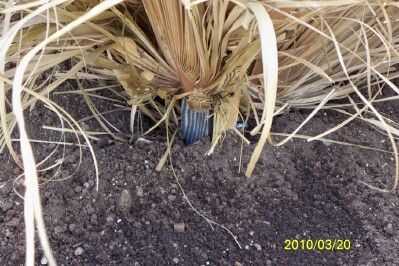 Sólo cavé por cerca de 18 pulgadas, y hecho el agujero grande bastante para sostener 3 lb de café puede. Este será el soporte para las hojas de Palma, mucho como funcionaría un soporte de árbol de Navidad. Quería usar el poder para mantener las hojas de contacto con la suciedad para evitar la descomposición prematura de la "Zarza".