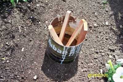 Auto explicativo, cortar varios pedazos de madera aproximadamente 8 en x1in x 3/4 para usar como cuñas para apisonar en lugar alrededor de las hojas y 2 x 2. Sólo utilice un martillo y les golpee en su lugar hasta que haya suficiente para mantener las hojas en posición vertical/en la posición que quieras que sea. Suciedad alrededor de la base de empuje y si es necesario, párese a, verificar la alineación y recortar con tijeras si es necesario. Proyecto completo!