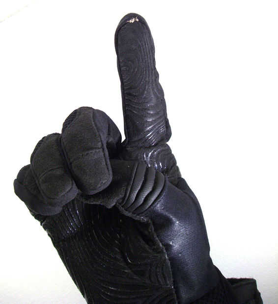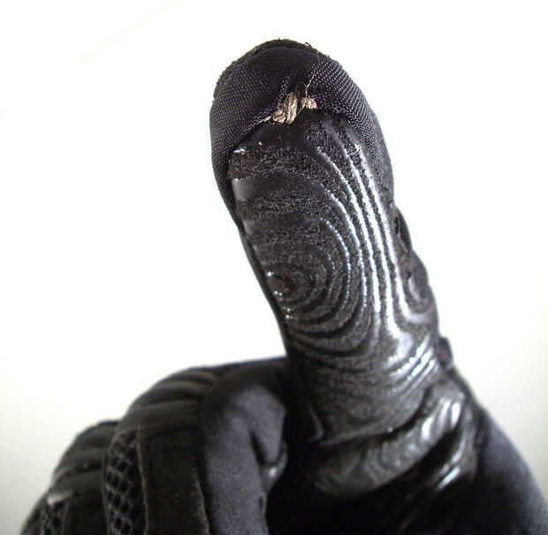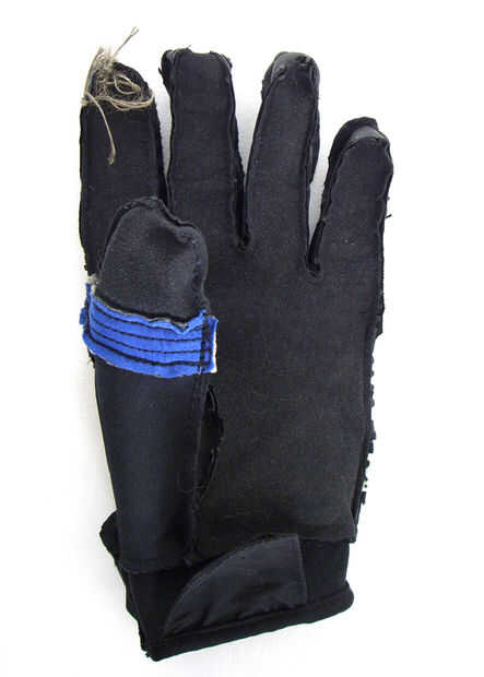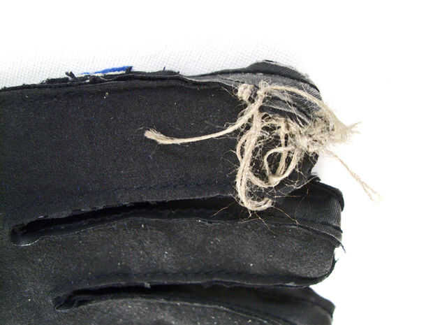Quiere asegurarse de que el hilo toque el dedo o la mano en el interior, así que deja algunos extra. Deja el hilo danging en sus nudos, etc.. Incluso podría Virar un poco a la guarnición del guante