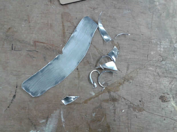 Una vez obtenido las plantillas, marcarlos en un pedazo de cartulina o de papel, recorte las piezas y utilizar el punzón junto con las piezas y marcar en la chapa. He utilizado hojas de aluminio para mi intento.