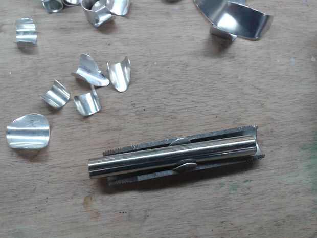 Una vez hecho esto, es hora de doblar las piezas que caben en la mano. Usted necesitará un metal doblado plantilla que consiste en tubos de metal fuertes. Un halfpipe para recoger la pieza y un tubo completo para formar el metal en la forma. Tome nota que esto sólo se aplica a las placas del dedo. Para las piezas de mano, usted necesitará encontrar un tubo metálico más a la forma alrededor.