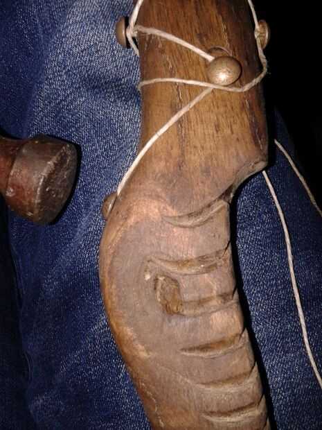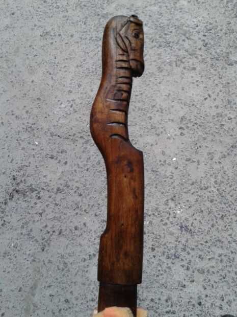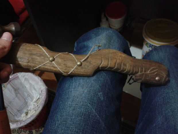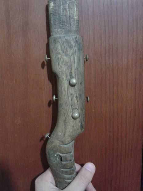 - Cuando todas las superficies se limpien y arena, el mango está listo para morir, tomé el mango a una tienda de acabado de muebles, él sólo agarró un pedazo de algodón, sumergido en alcohol y colorante, luego teñido el mango entero, dos veces solamente (no lo quiero muy oscuro). Elegí tinte nogal para darle un aspecto antiguo.